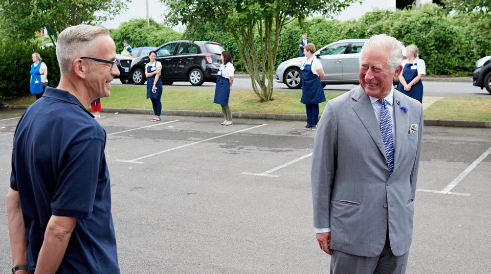 On Thursday 9th July, HRH The Prince of Wales and HRH The Duchess of Cornwall, visited our Gloucestershire workrooms, to celebrate our wonderful machinists, operators, and management for their contribution in supporting key workers by producing personal protective equipment for the National Health Service, amidst the peak of the Covid-19 crisis.