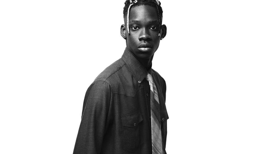 “Amadou has a natural elegance about him, so I wanted to keep things really simple and chose to accessorise the shirt with a classic college style tie,” says Nolan. “I felt a strong sense of his style coming through with the way he wore his hair. It's important, and it really helped steer the choice for the colour and texture of tie."