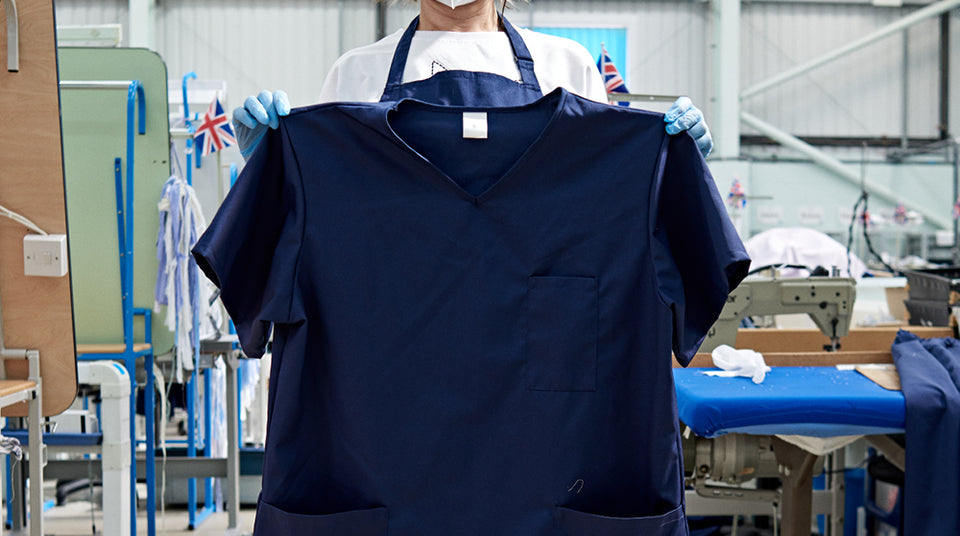 We sourced our scrubs fabric from Lancashire-based Carrington Textiles, with over 125 years’ experience manufacturing workwear fabrics, they can provide the correctly finished and navy-dyed polyester-cotton blend fabric to meet the NHS’s standards. It is also key to note that this blend allows for a 60-degree wash, which is the temperature advised for killing coronavirus.