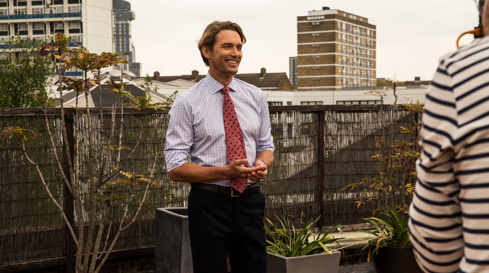 Adapting this, we focused the new collection on the idea of a European man and his desire to take in London for everything that it is. Van Gogh’s prominent artworks, and his artist friends including Francis Bacon, were used to guide the palette combinations of soft pink, rich green and navy against pops of bold coral, marine, yellow and copper.